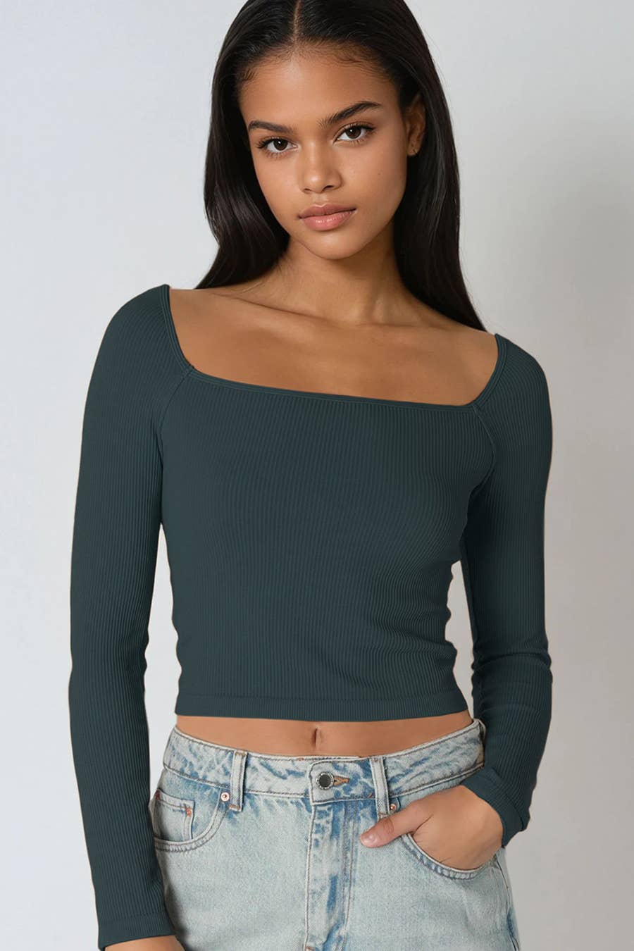Sexy long sleeve chain trim front cutout top Long sleeves Round neckline Front cutout detail Layered neck detail Neck chain detail High stretch for comfort CONTENT & CARE: Slinky jersey 95% polyester, 5% spandex machine wash cold imported