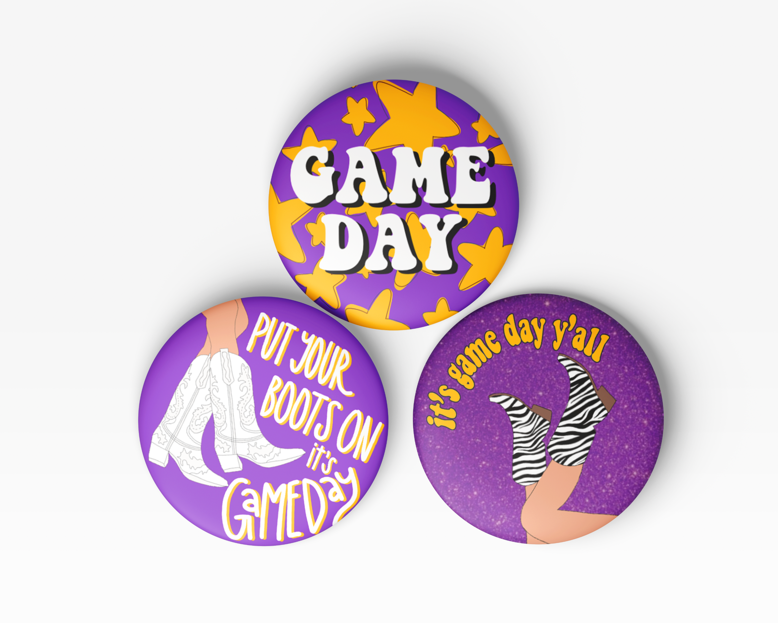 Each pin back button is 2.25 inches in diameter. These buttons are super lightweight and perfect for Game Day! Add to your outfit or a purse strap to complete your game day look. Each button is finished with a plastic coating to keep your button clean from any game day activities! *Original REBL Creative design* ✨For quantities larger than in stock amount, just send us a message✨ LSU Tigers Louisiana Geaux Tigers