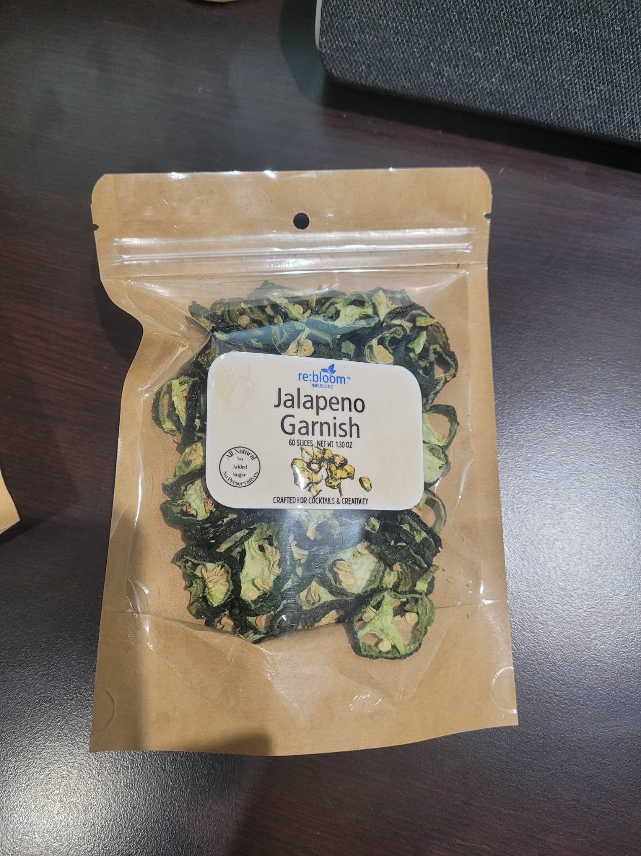 These jalapeno slices look so fresh in the pouch! They are visually appealing. I appreciate the hang hole at the top of the pouch for easy display. Very attractive packaging.