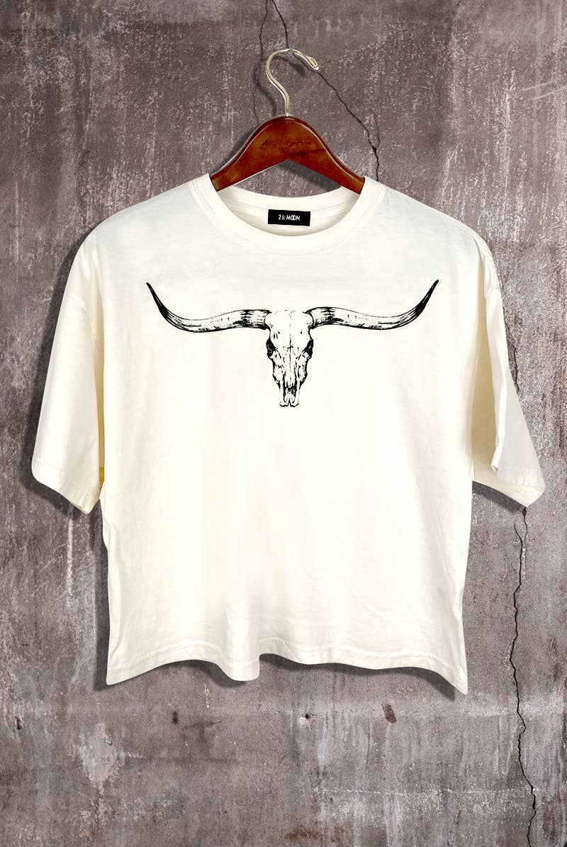 Die cut Leopard pattern Cow Skull Graphic Crop Tee
