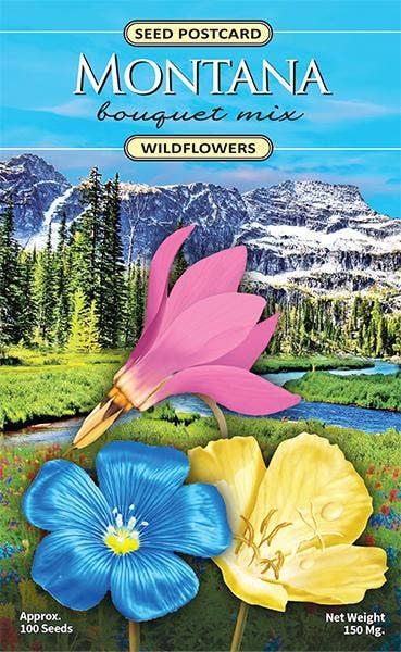 Montana Wildflower Mix - A Premium collection of 14 flower varieties A perfect item for those who want to enjoy the natural beauty of Montana wildflowers in their home garden. This makes for a great gift item or for someone looking to plant Montana wildflowers in their own home garden. Our beautiful assortment contains: Blue Columbine, Blue Flax, Penstemon, Gaillardia, African Daisy, Sweet William, Siberian Wallflower, Catchfly, Evening Primrose, Shasta Daisy, Plains Coreopsis, Prairie Coneflower, Poppy, Black Eyed Susan Over 53,000 seeds Easy to grow Non-GMO, made in the USA Attracts pollinators Covers over 325 sq. ft. Seeds are packaged in an 8" x 5" x 3/4" resealable pouch.
