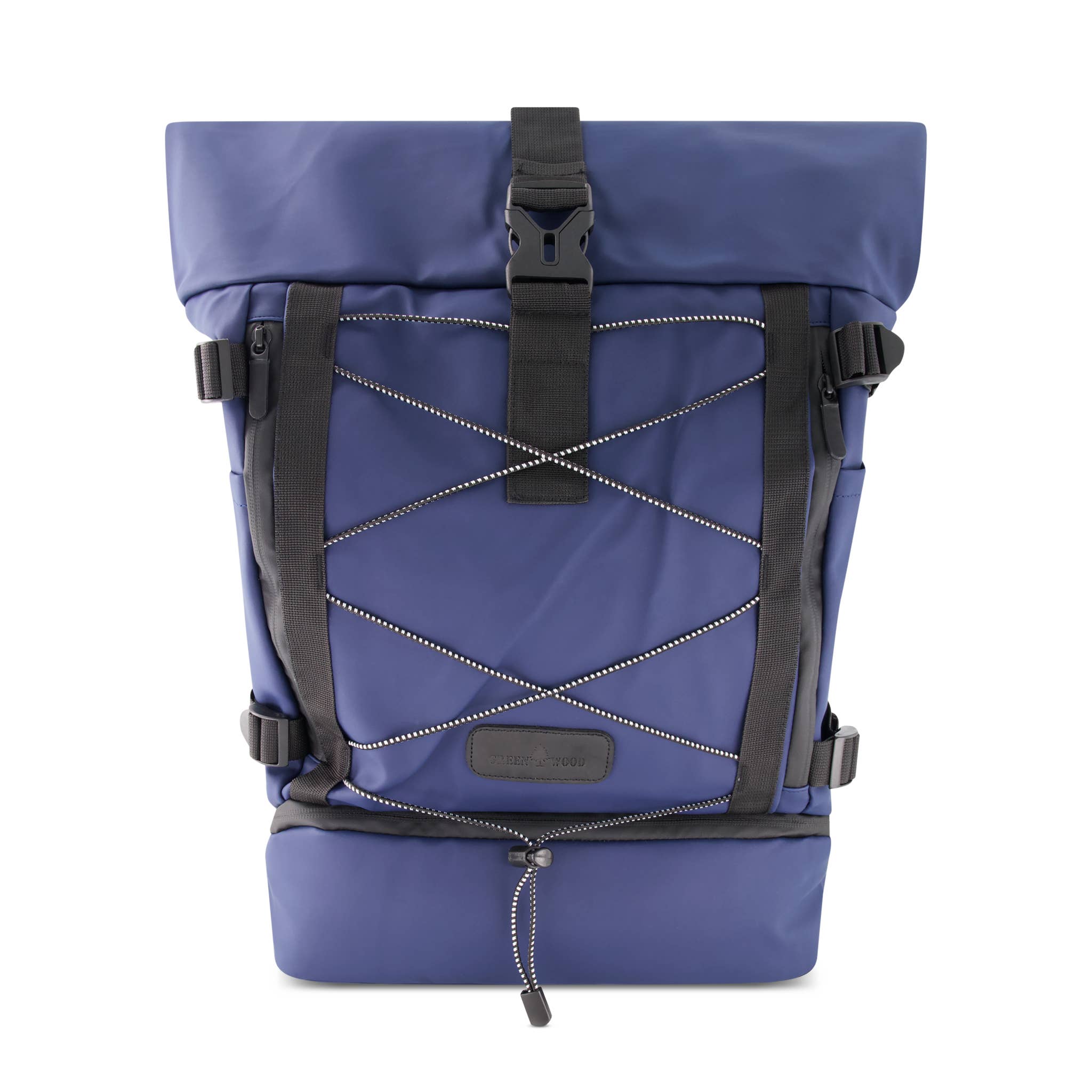 This Roll Top Laptop Backpack offers spacious storage with a padded laptop compartment for devices up to 15.6 inches. It features multiple pockets for easy organization of essentials like phones, wallets, keys, and more. The expandable roll-top closure allows for adjustable capacity, making it ideal for work, travel, or daily use. Made from waterproof PU leather, it boasts reinforced zippers, durable buckles, and a breathable padded back panel for comfort and longevity. Ergonomic shoulder straps ensure comfortable carrying, even with heavier loads. Sleek and versatile, this modern unisex backpack is available in Black. Whether for work, school, or travel, it’s the perfect blend of style and functionality. Specs: Outer Dimensions: 20 x 12 inches Laptop Compartment: 12 x 8 inches (Fits up to 15.6” laptop) Pockets: 2 Front Pockets 1 Back Pocket 2 Mobile & Accessory Pockets 1 Bottom Compartment Material: Waterproof PU Leather Available Colors: Black
