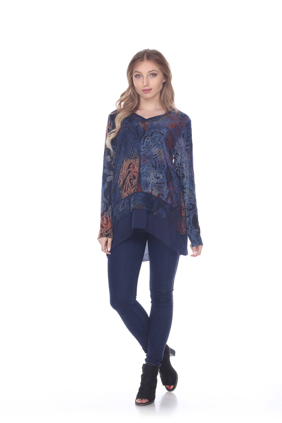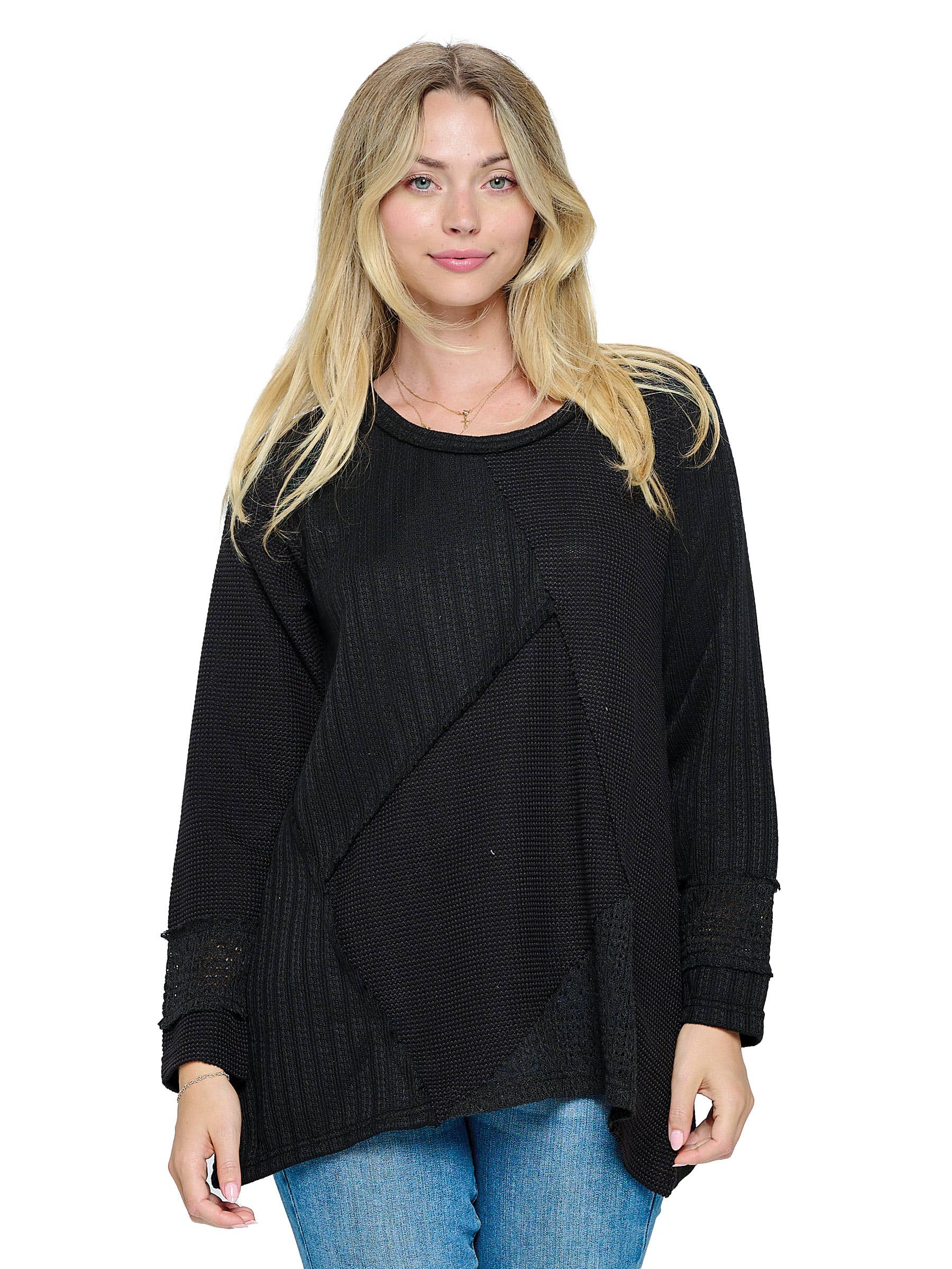 (Regular Price $16) – Fall Winter Tunic Top – Boho Chic Casual Style – Comfortable Effortless Look – Gyspi Groovy Style – Trendy Style – Easy Fit Pullover Top – Everyday Wear – Tie-Dye Design – Contrast Color – Patchwork Design – Lace Applique – Round Neck – Long Sleeves – 95% Viscose 5% Elastic Measurements : Chest- S 36”, M 38”, L 41”, XL 44” Length- S 27”, M 28”, L 28.5”, XL 29” Hem- S 52”, M 54”, L 57”, XL 60”