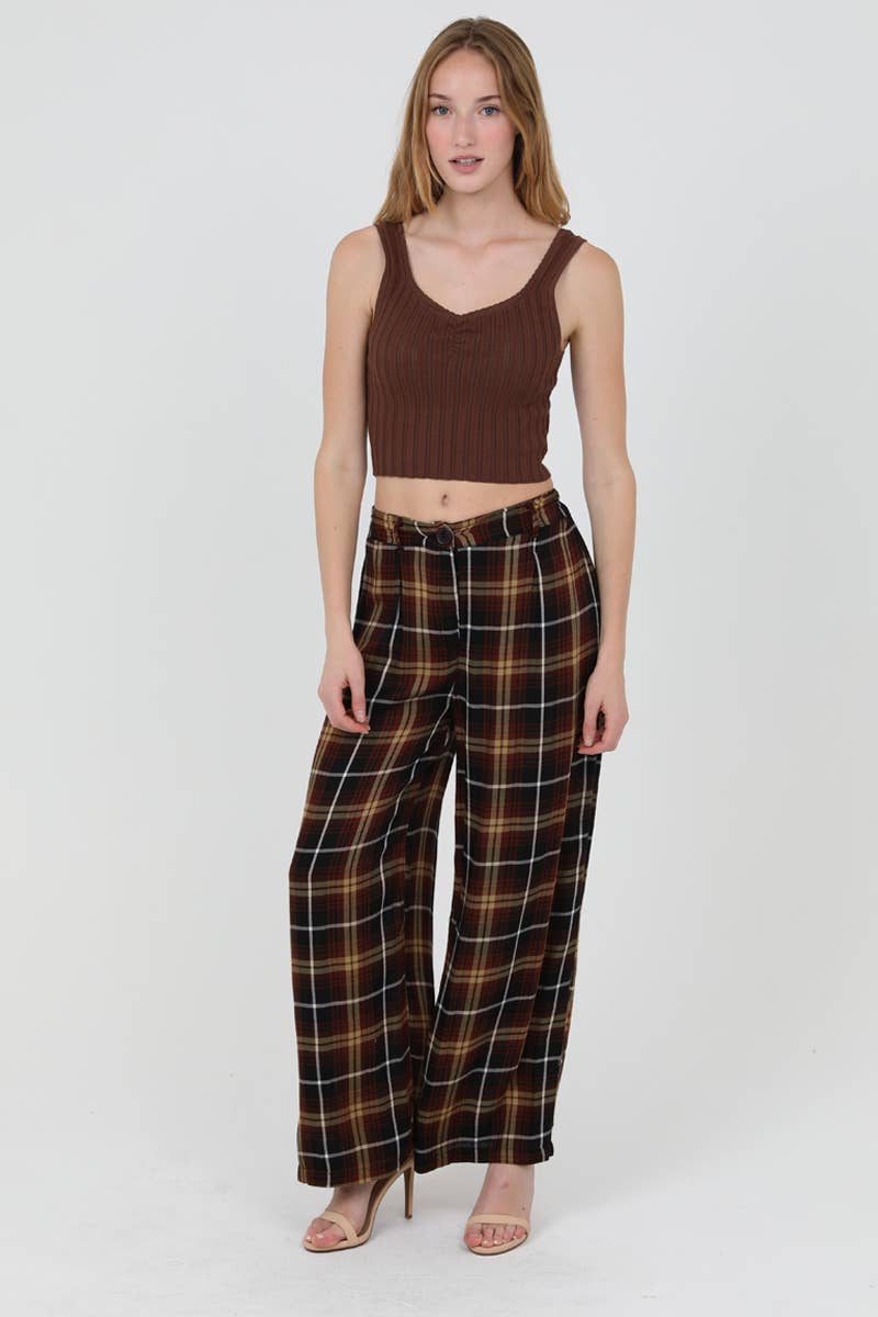 YARN DYE PLAID FLANNEL PAJAMA PANTS WITH SIDE POCKETS A pajama pants with side pockets in a yarn dye plaid, polyester cotton brushed flannel woven fabrication featuring an elasticized waist band 75% POLYESTER 22% COTTON 2% RAYON 1% NYLON
