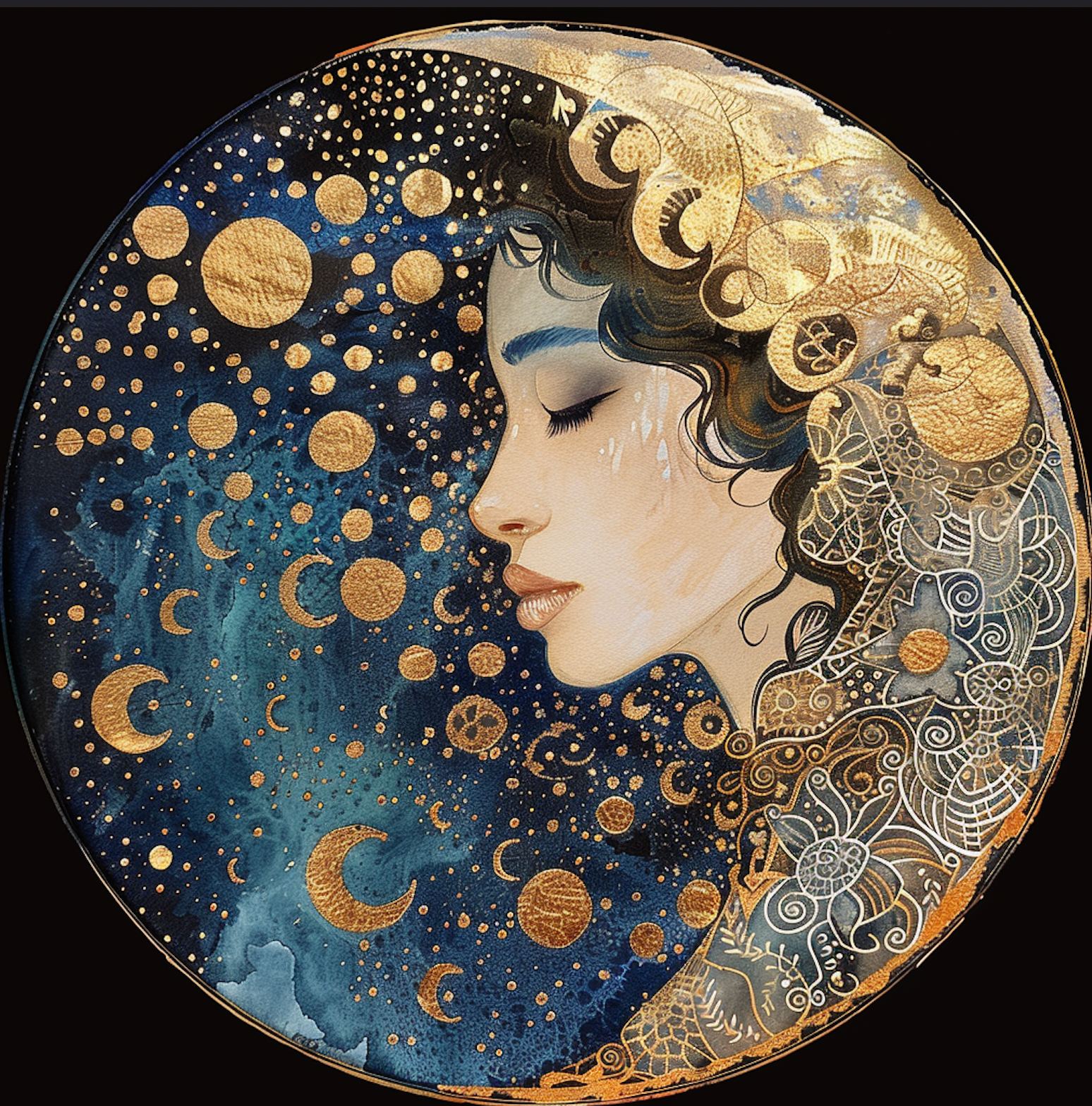 Beautiful Blue Moon Mystical Goddess Tambourine and Ribbon W