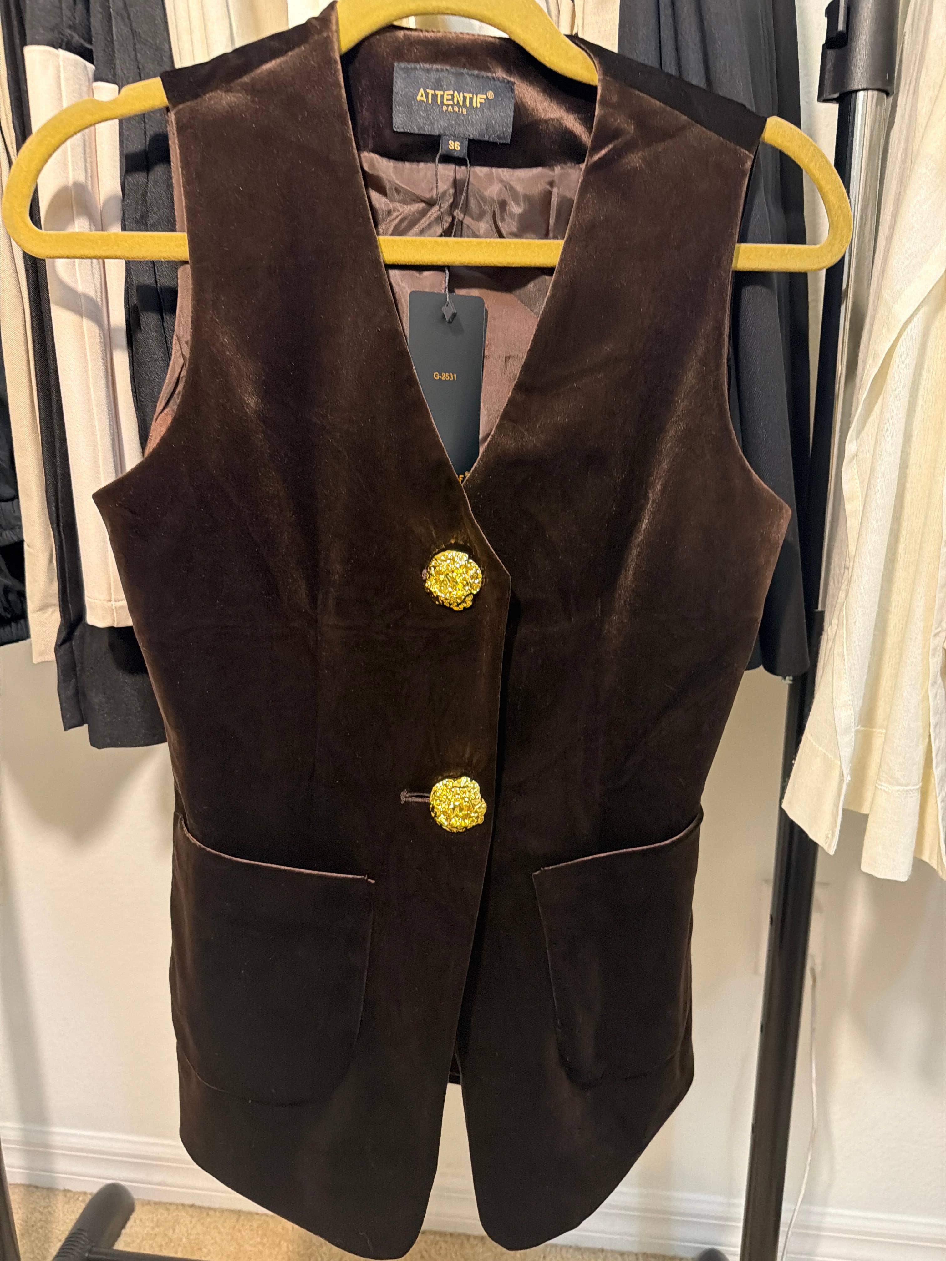 ![Attentif Paris - Wholesale Suit Vest - Women's - [Heather] Sleeveless vest round neckline gold buttons10](https://cdn.faire.com/fastly/48b2fccc5eef8d91360d03fabaae3bbc5664c2037513f72bc5dddd92f1c84da3.jpeg?bg-color=FFFFFF&canvas=720:960&dpr=1&fit=bounds&format=jpg&height=960&width=720)