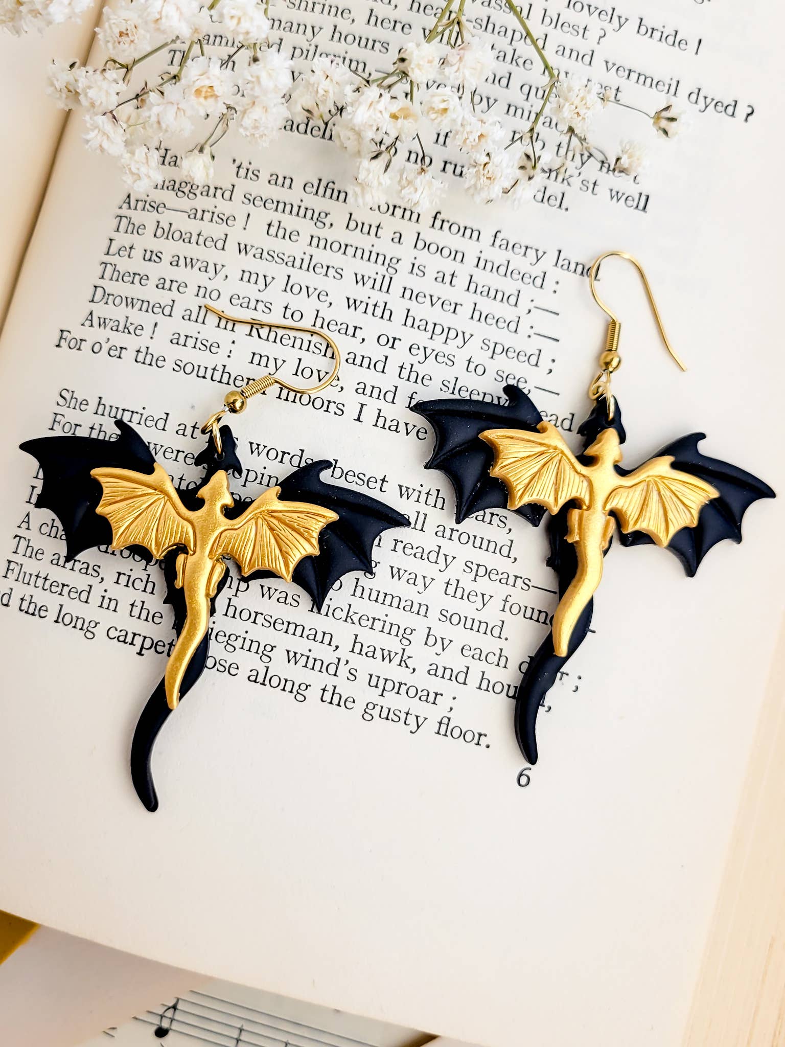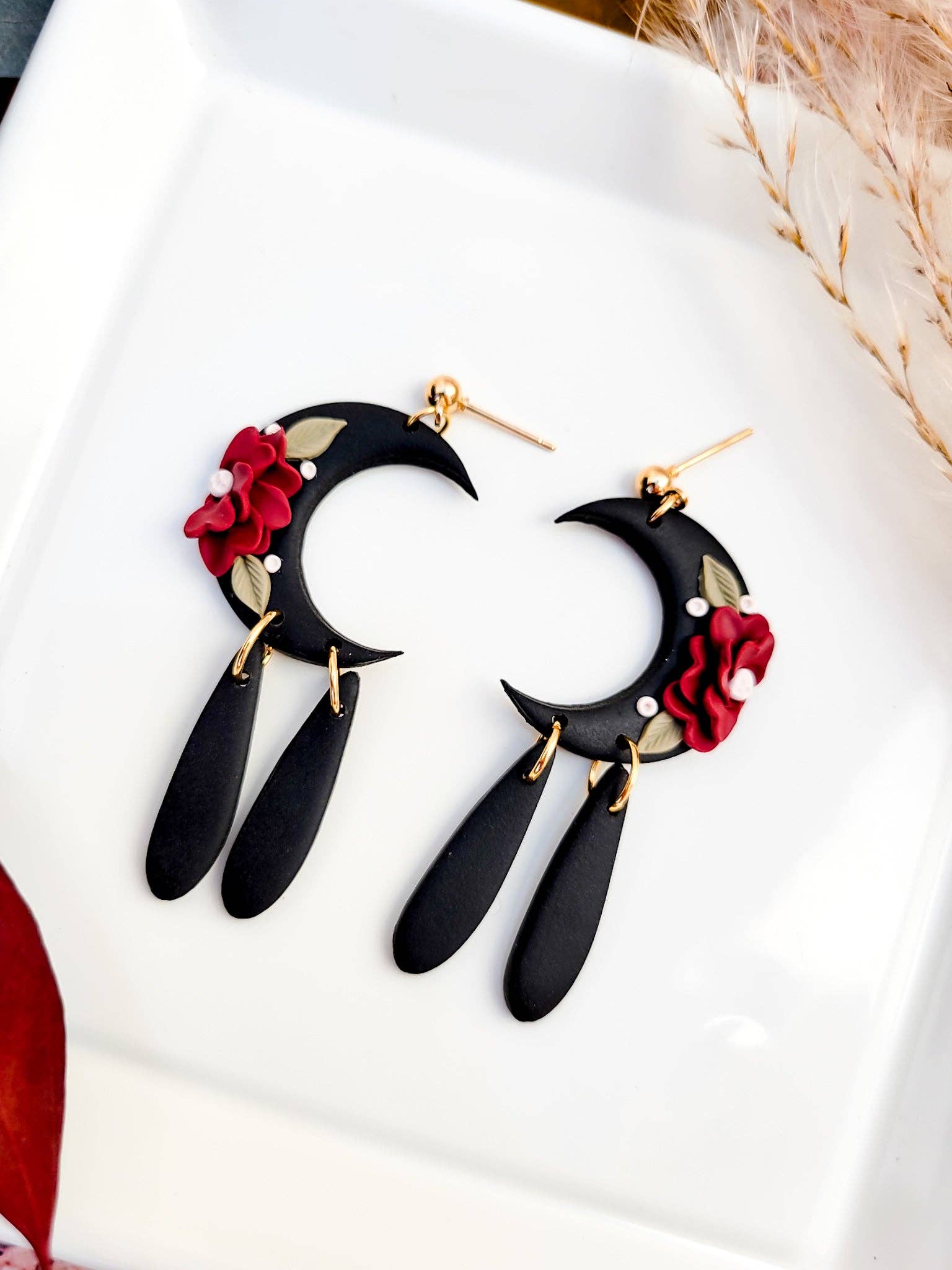 Inspired by page art featured in Geneva Monroe's new release Star Spear Crafted by hand with lightweight polymer clay, these earrings feature intricately designed roses, making them a daring additin to any outfit.