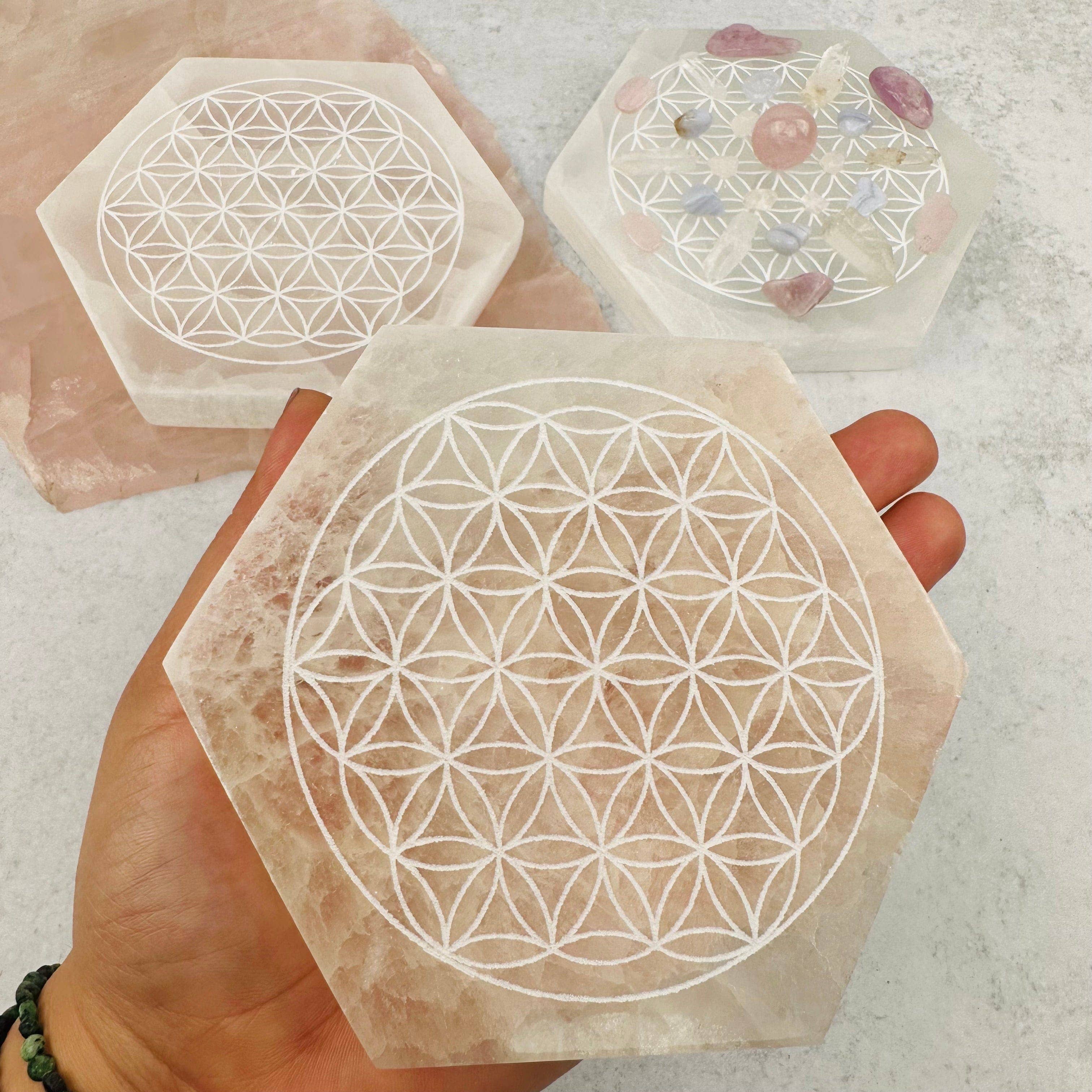Listing is for one (1) wood crystal grid - seed of life and 7 chakras design Stock photos - these grids may vary in size and characteristics. *stones and crystals not included We have a big selection of healing stones and crystals on our website you can purchase along with this board! Measures approx.: 25cm/9" in diameter and 3mm thick These wooden round "Â seed of life and 7 chakras design" can be used as a grid and as decor for your meditation space. These are perfect for your home or office decor, your calligraphy crafts, keeping in your meditation space, or even gifting to someone! Grab yours while you can, sure to go quick. Thank you for looking, have an amazing day!