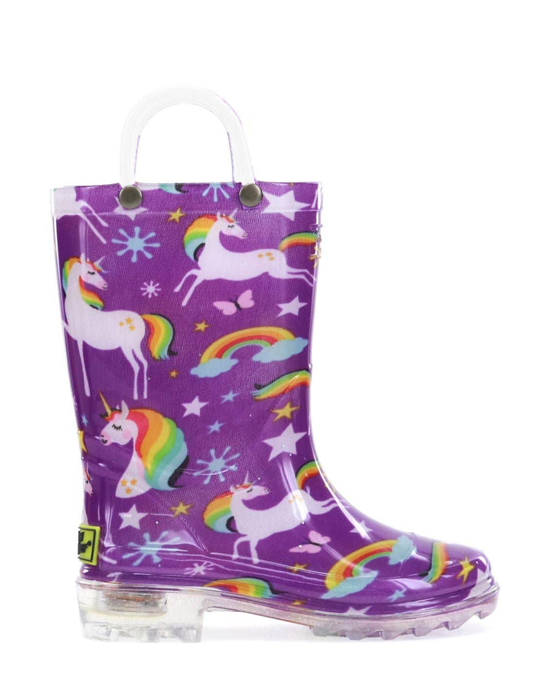 Rough and tough monster truck printed boots. Large tire tread background and a stripe of green trim around the top and bottom to frame this awesome boot. Waterproof and easy to wipe clean after a day of racing through puddles. * 100% Waterproof high-quality rubber * Height: 6.5" (based on size 9) * Removable EVA insole * Soft polyester/cotton lining * Rubber mini lug outsole * Pull-on loops for self-dressing Item Number: 2410904P Western Chief has been making trusted family footwear since 1891.