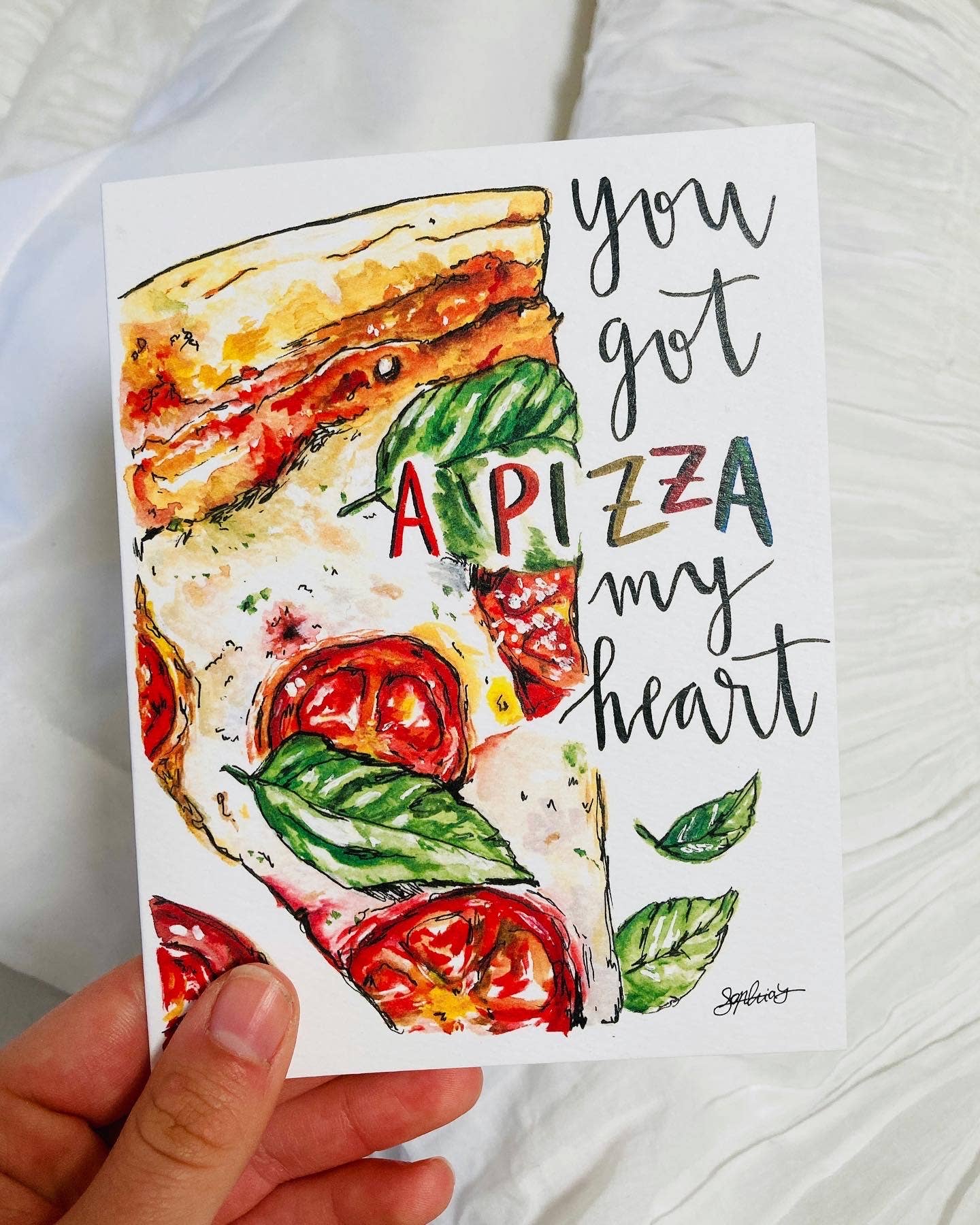 ‘I Love You More Than Cheese’ Watercolor Greeting Card | Sophia Lavrov ~Blank printed card + brown paper bag envelope + cello sleeve ~Calling all cheese lovers! This card is for you:) Sometimes it's hard to admit that we love people more than cheese, but this card is the best way to say it! ~Sophia Lavrov’s original watercolor artwork, adorned with calligraphy ~ Printed card, hand-packaged ~Instagram: @sophialavrovdesigns
