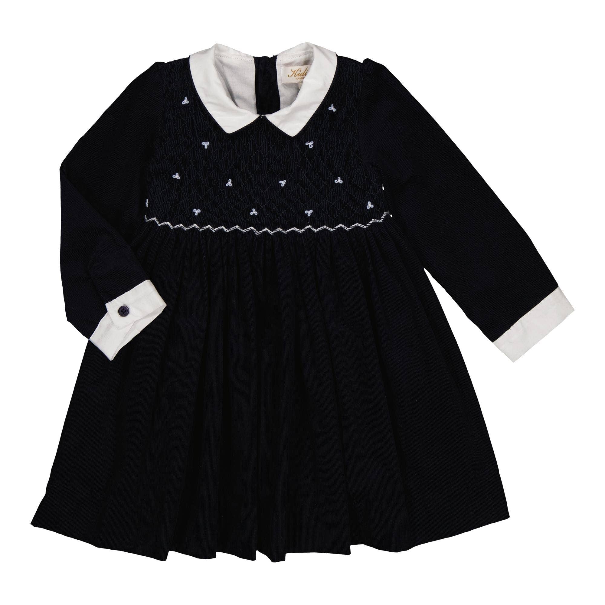 Wholesale Rison Smocked Dress with Burgundy Velvet Collar