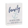 Merry christmas trim sign, min. 4. Measurements: 9" w x 6" t x 1/2" d. "Merry christmas" chippy white wood, gray text, and wood beads to hang.
