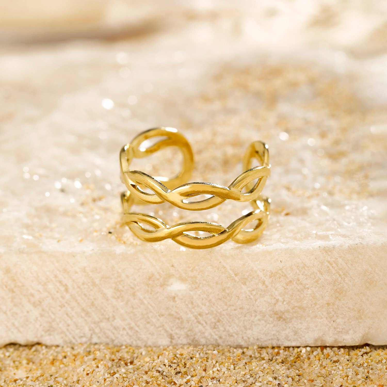 * Set of 5 gold stainless steel rings * Adjustable, the ring tightens or expands from size 52 to 60 * Hypoallergenic, this jewelry is water-resistant and does not tarnish