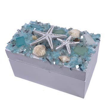 This decorative trinket box is made from capiz shell and is the perfect addition to your coastal themed Christmas.