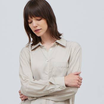 SKU: 194304-#1 BONE Made in China Aesthetic: Casual and Western Care Instructions: Machine wash Fabric: 91% POLYESTER, 9% SPANDEX Fit: Missy and Plus Size Neckline: Collared Occasion Theme: Everyday Occasion: Everyday Pattern: Solid Season: Core Sleeve Length: Long Sleeve Product Language: English
