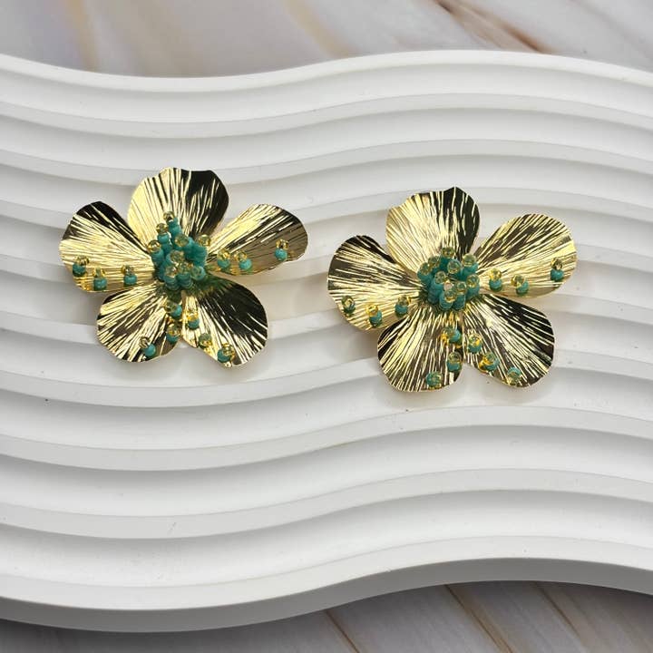 Elevate your look with these Half Flower Earrings, a chic and contemporary accessory that brings a fresh twist to floral-inspired jewelry. These earrings feature a minimalist half-flower design with polished gold accents, which are perfect for adding elegance and sophistication to any outfit. Whether attending a formal event, heading to the office, or going out with friends, these earrings are versatile enough to complement any style. Designed for comfort and durability, the Half Flower Earrings are lightweight and easy to wear all day. They also make an ideal gift for fashion-forward individuals who appreciate unique and modern accessories. Handmade item Materials: Mostacilla Beads, 24k Gold Plated Design: Elegant Flower Shape Size: Width 2 inch (ca. 5 cm), Length 3 inch (ca. 8 cm) Location: Earlobe Closure: Push Back Style: Boho & Hippie