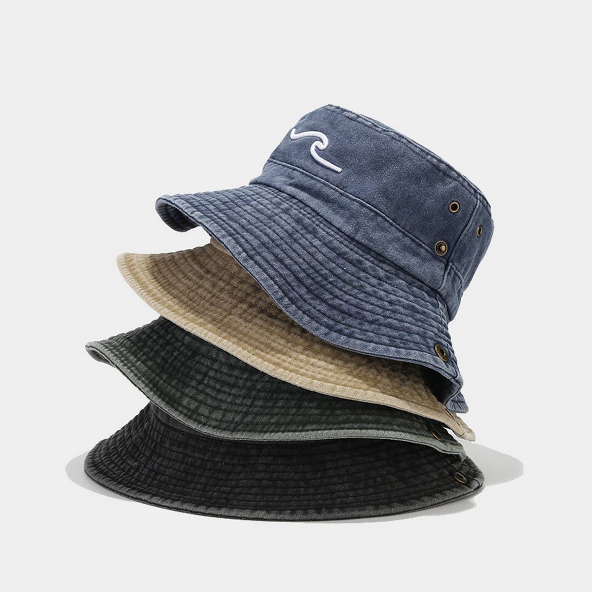 Wholesale 1510_BLUE - One Piece Solid Color Bucket Hat W/ Bullet Belt