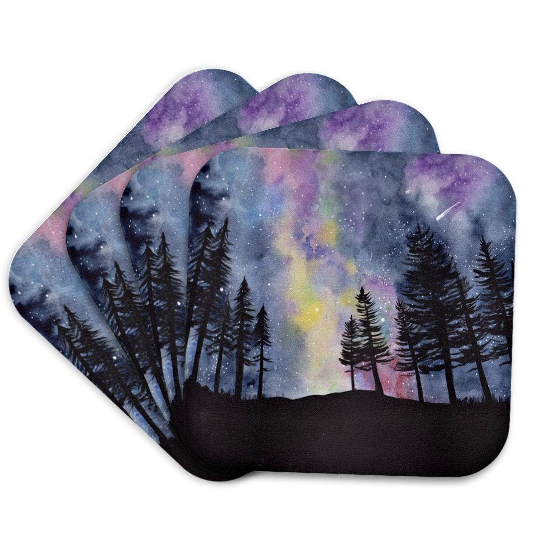 Pine Trees & Stars Engraved Wood Coasters