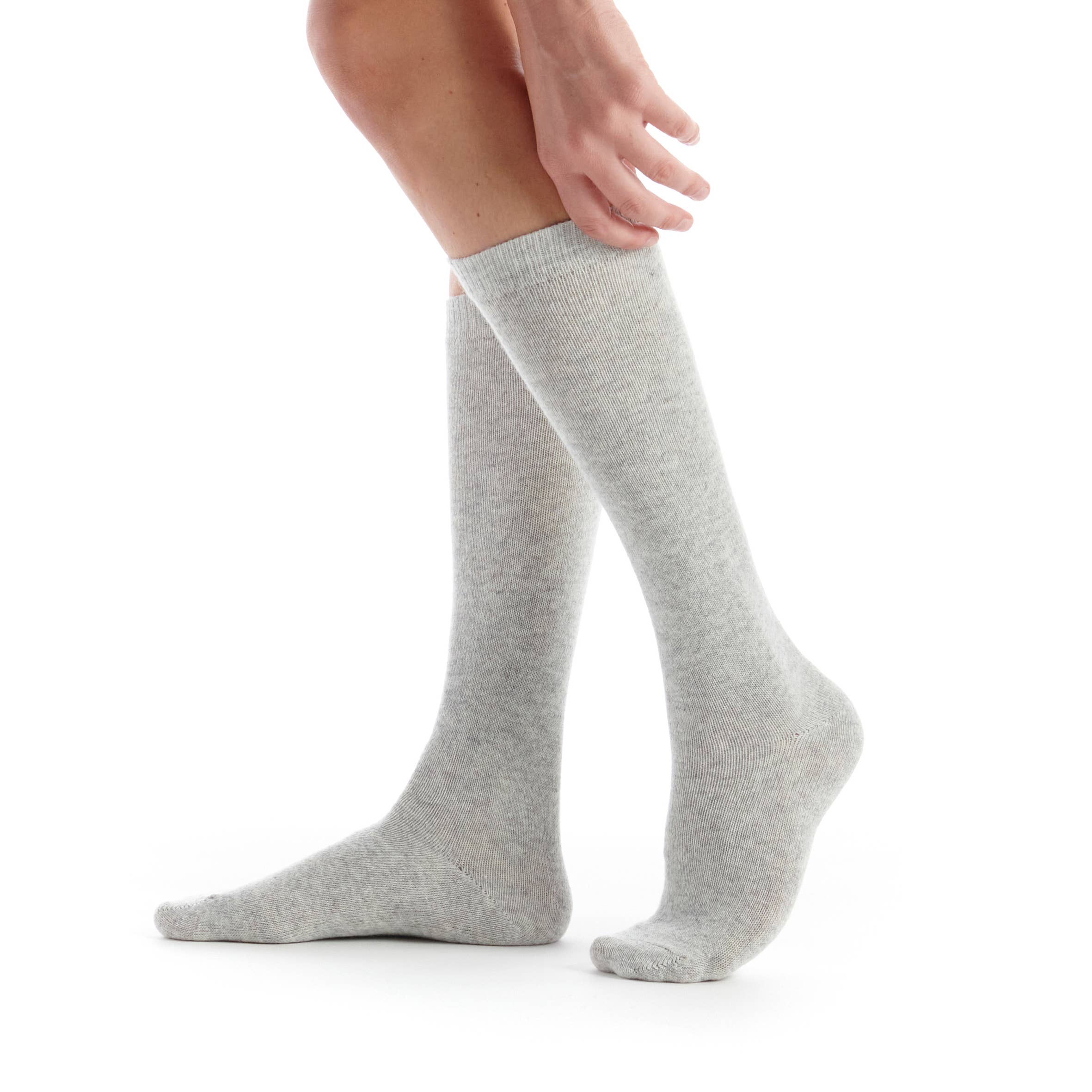 Anthracite cashmere plain knee-high socks