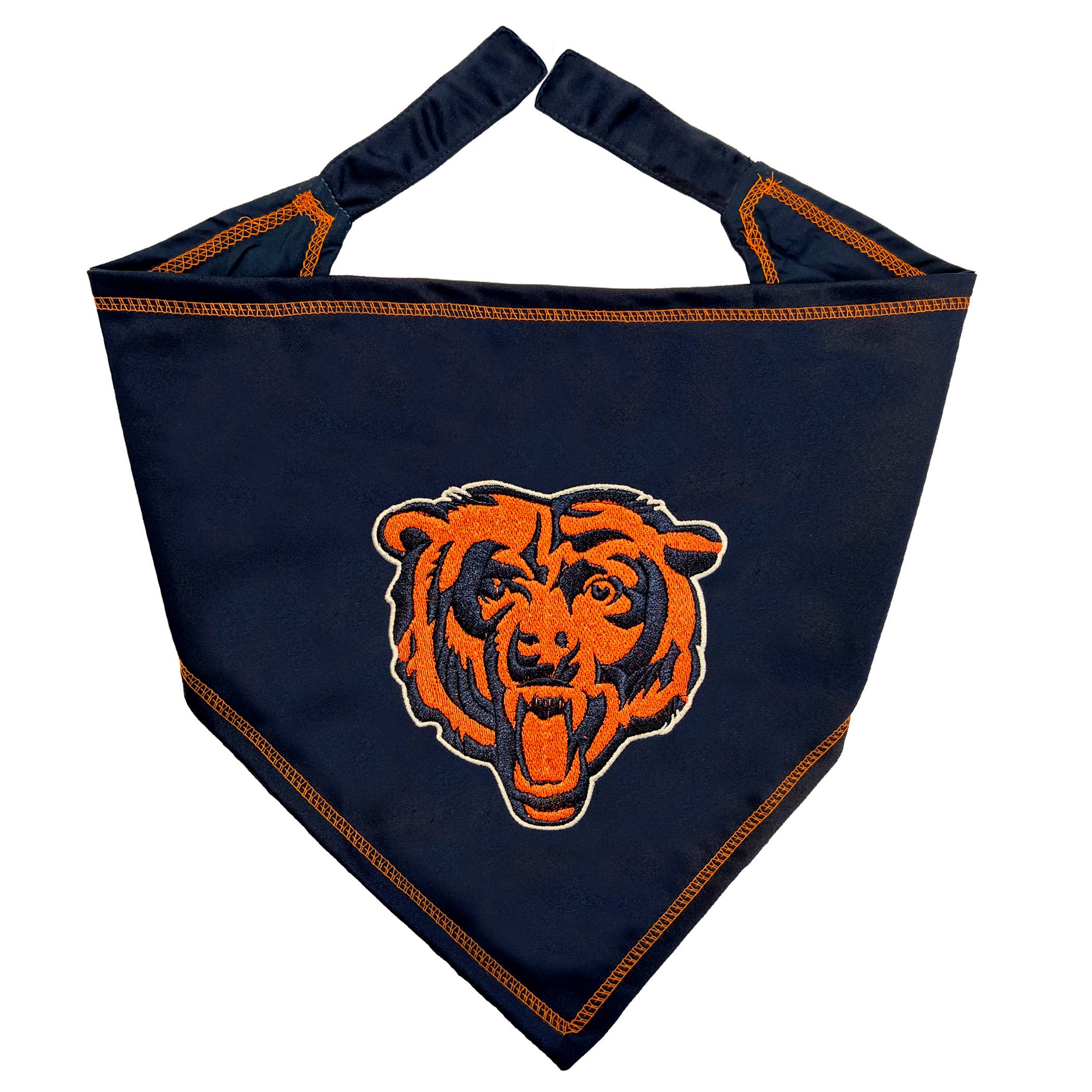 Polyester/cotton blend pet bandana with a sublimated all-over print style design of team logos. Traditionally tied or with the collar running through the opening. Sizes: small – 22", large – 30". officially licensed product.