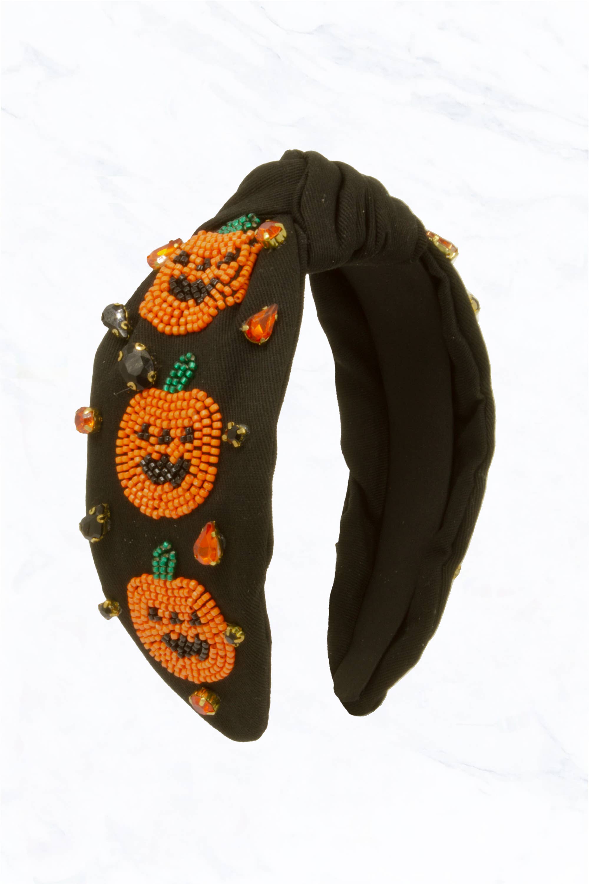 Or Halloween Themed Jeweled Top Knotted Headband H16061OR for wholesale on Faire0