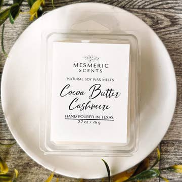 Cashmere Throw "Softness you can smell." Cozy cashmere wrapped in soft florals and sweet musk. Reminds you of curling up in your favorite oversized knit blanket after a long day. Fragrance Profile: 🧺 Top Notes: Pink Peppercorn, Geranium, White Jasmine 🧶 Middle Notes: May Rose, Egyptian Cotton, Lavender ☁️ Base Notes: Cashmere Musk, Spun Sugar, Mahogany Mood: Safe, Warm, & Softly Cocooned Perfect for: Quiet, rainy days in, romanticizing self care, and when you just need home to feel calm and comforted. Ideal for quick scent boosts, each piece provides approximately 6 hours of fragrance. Simply pop out one or two squares, place in your warmer, and indulge in the inviting aroma. Use only in tea-light warmers or those approved for wax melts. Do not add water or use on a stove or oven. Always follow your warmer's instructions. Repeatedly use each melt for a prolonged aromatic experience until they are no longer fragrant. * Has Blue Corn Flower Petals in the wax.