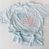 Be a star with our “land that I love” tee. A vintage inspired print with cute flag + bow detail. Printed on a washed light blue comfort wash unisex tee.