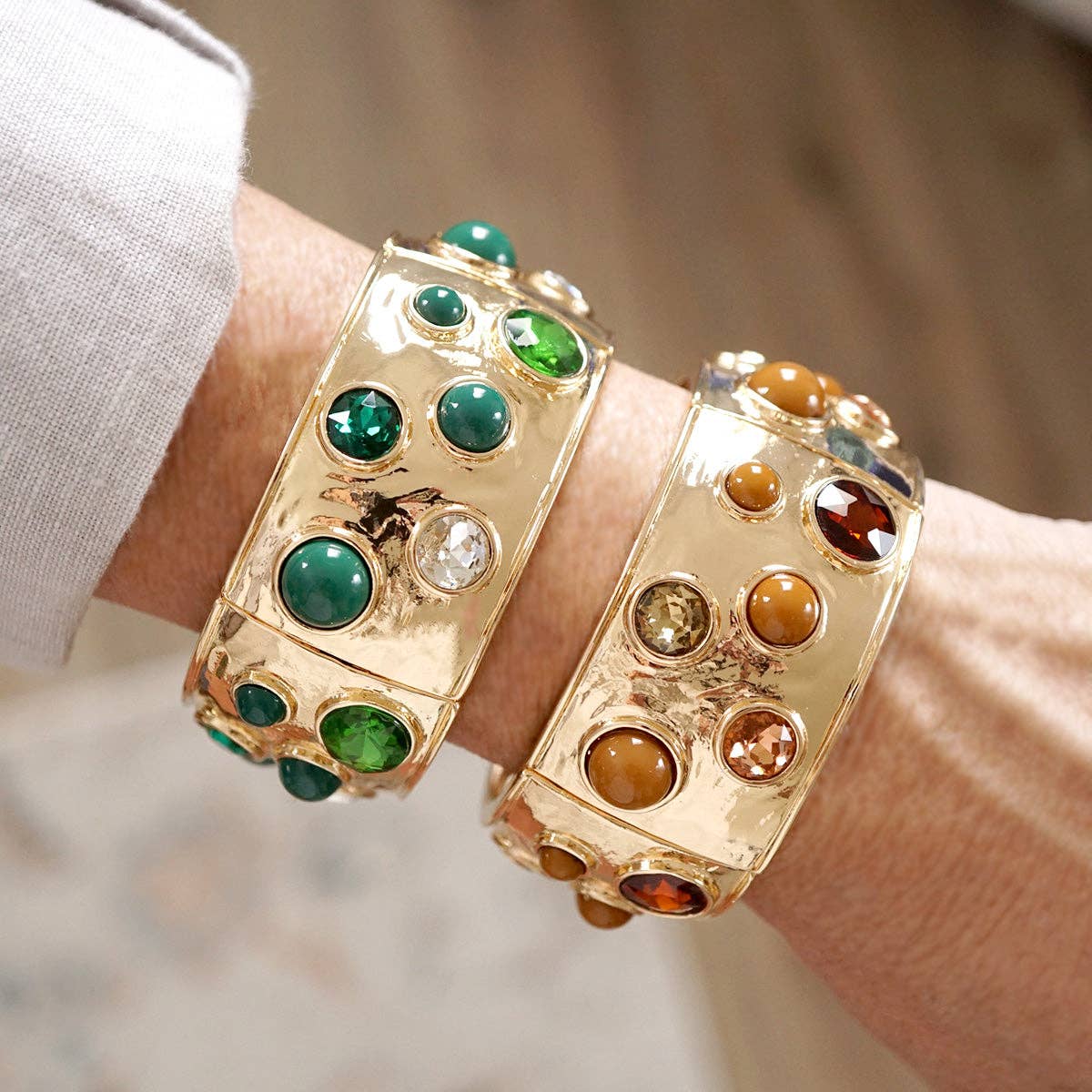 SKU: LuxeBangleSmPoppy Made in Thailand Color: Blue, Green, Multi-Colored, Pink, Red, Rose Gold, and Yellow Gold Occasion: Elevated Casual and Everyday Style: Bright & Bold and Classic Theme: Inspiration Weight: 12.47 g (0.44 oz) Dimensions: 7.6 x 7.6 x 0.8 cm (3 x 3 x 0.3 in)
