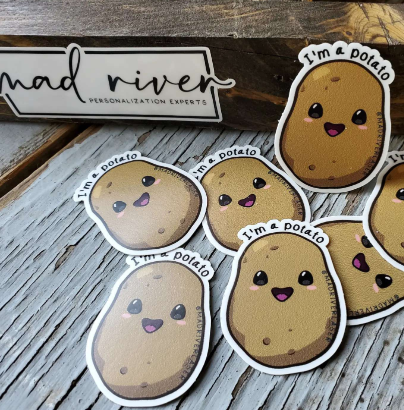 Idahoan potato sticker decal Idaho potato lover sticker Show your love for Idaho potatoes with this hilarious sticker! Perfect for any potato lover, this sticker proudly declares your appreciation for the iconic Idaho potato. Made with high-quality materials, this sticker is durable and long-lasting. A great addition to any sticker collection! To shop the rest of our sticker collection, click here.  Details  Largest side is approximately 3.5-3 inches Weatherproof & dishwasher safe To be kept up to date on our newest styles and designs, don’t forget to follow us on Instagram!