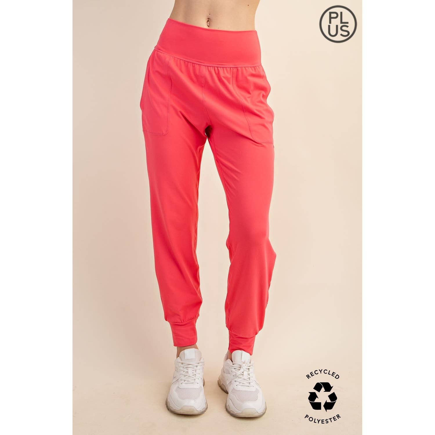- Style No.: PP6521 Butter Soft High Waist Joggers with Pockets Available in Other Color Style# P6521 Available in Plus Size 1XL-2XL-3XL Style# P6521PL Stylist Recommendation: Dress casually with these comfortable joggers and basic cotton shirt. Model is 5'9" and wearing size Small. Fabric : 84% Recycled Polyester Microfiber, 16% Spandex C.O.O : Import