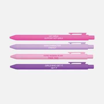 This bookish pen set it perfect for the romance readers who like a little extra spice in their life. Pens Say: I Like My Books Extra Spicy, Fictional Boyfriend Collector, Romance Reader, Busy Reading Smut Pack of 4 Jotter Pens. Black Gel Ink. Pens come in clear plastic sleeve with branded paper backing.