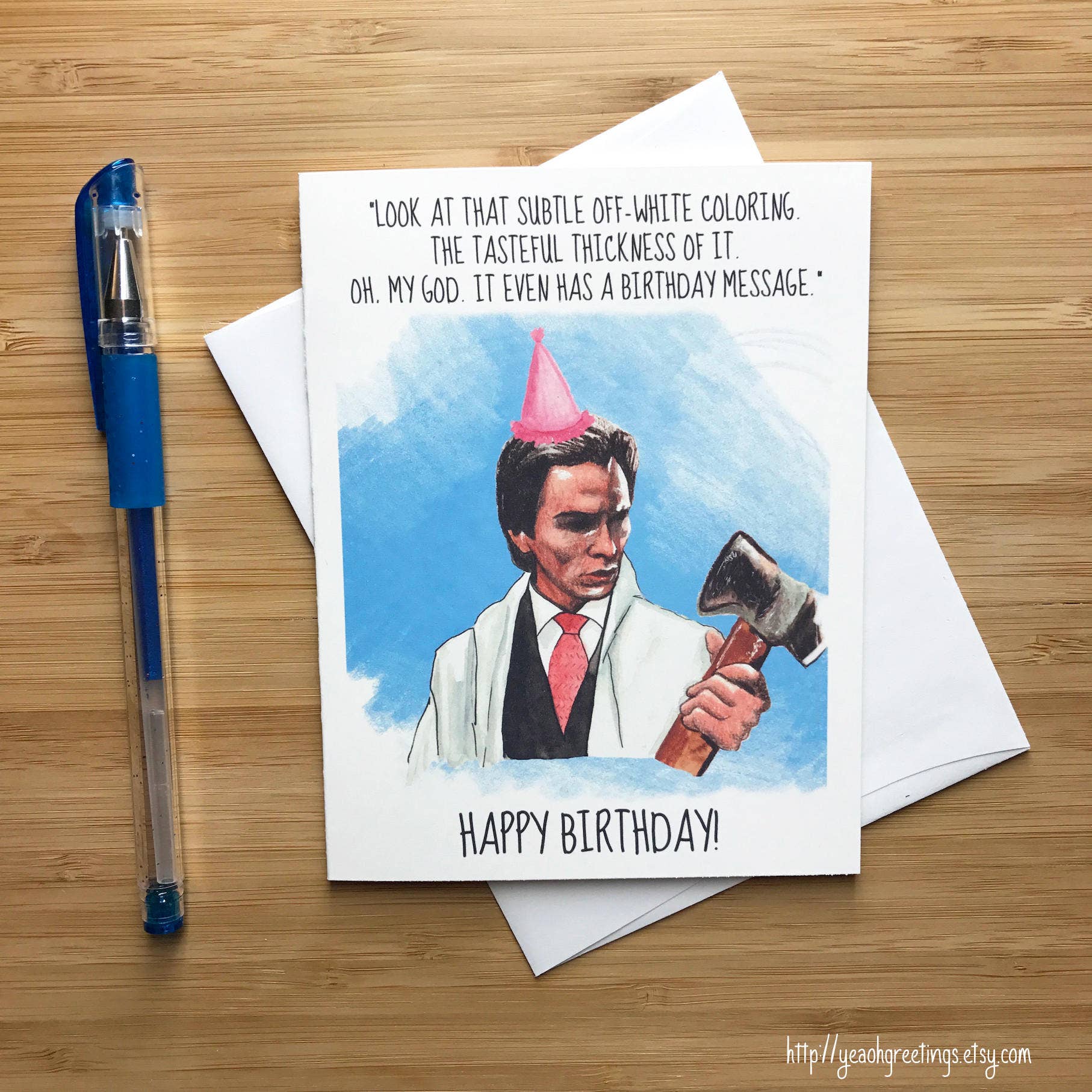 MATERIAL & PACKAGING: - Each card is 100% made by hand. - Printed on premium, heavy cardstock. - Card measures 4.25" x 5.5" inches folded (A2) - Blank inside for your personal message. - Includes a 4.25" x 5.5" inch A2 envelope for your card. - Card wrapped in a protective cellophane sleeve.