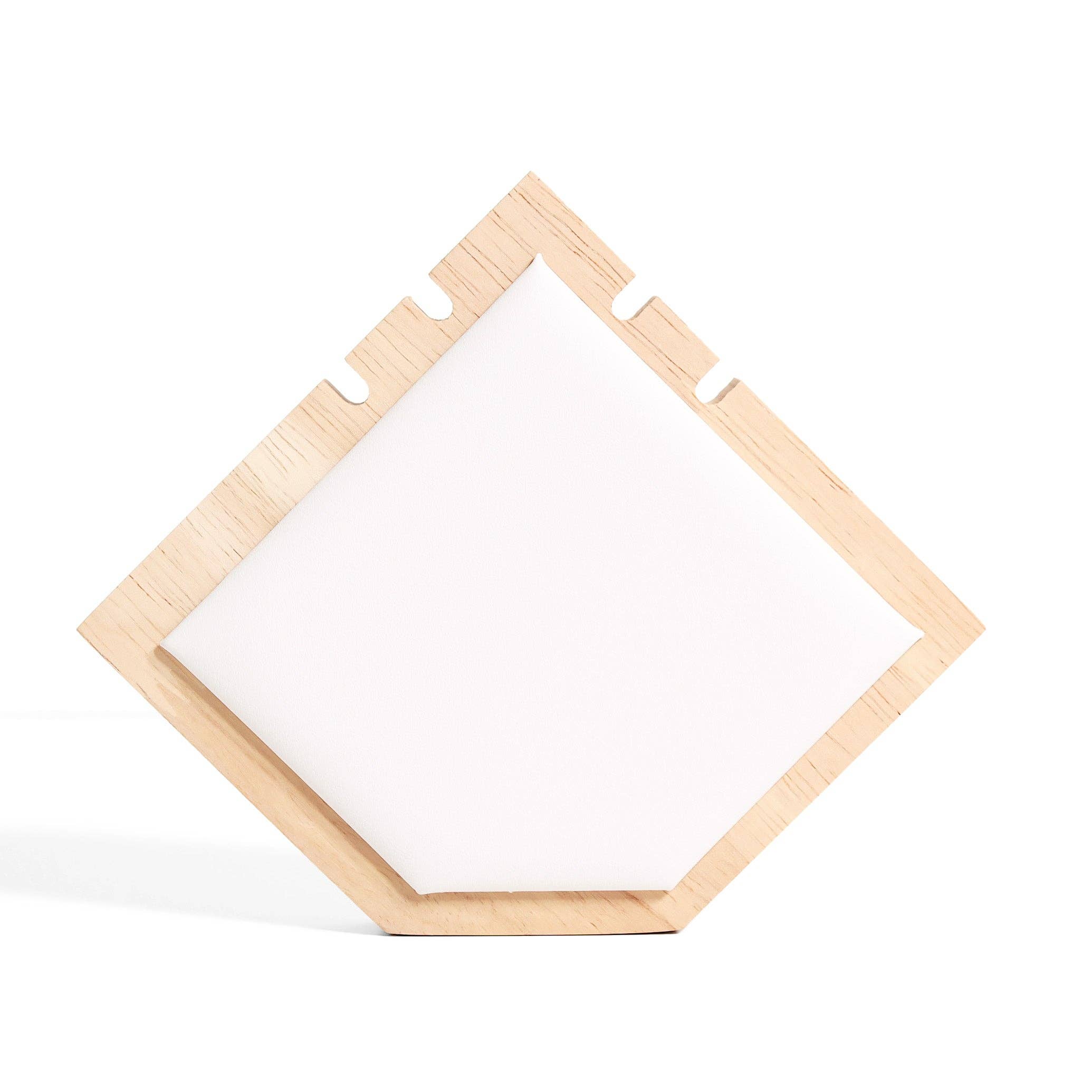 Showcase your jewelry with our stunning new natural wood and faux leather hexagon shaped necklace display! Crafted from premium quality wood, this display stand combines modern design with natural beauty, making it the perfect choice for showcasing and highlighting your exquisite necklace or chain collection. This necklace display is slotted for one necklace and is available with accents in black or white that you can place your jewelry over in an elegant way to fit your store's style. ✦ High-Quality Wood: Made from durable, high-quality wood, this display is designed to last, offering a sturdy and reliable platform for your precious jewelry. ✦ Smooth Finish: The finely polished surface highlights the natural grain of the wood, providing a sophisticated and clean look that complements any shop décor Approx. Weight: 104 grams Approx. Width: 4.5" Approx. Height: 4"
