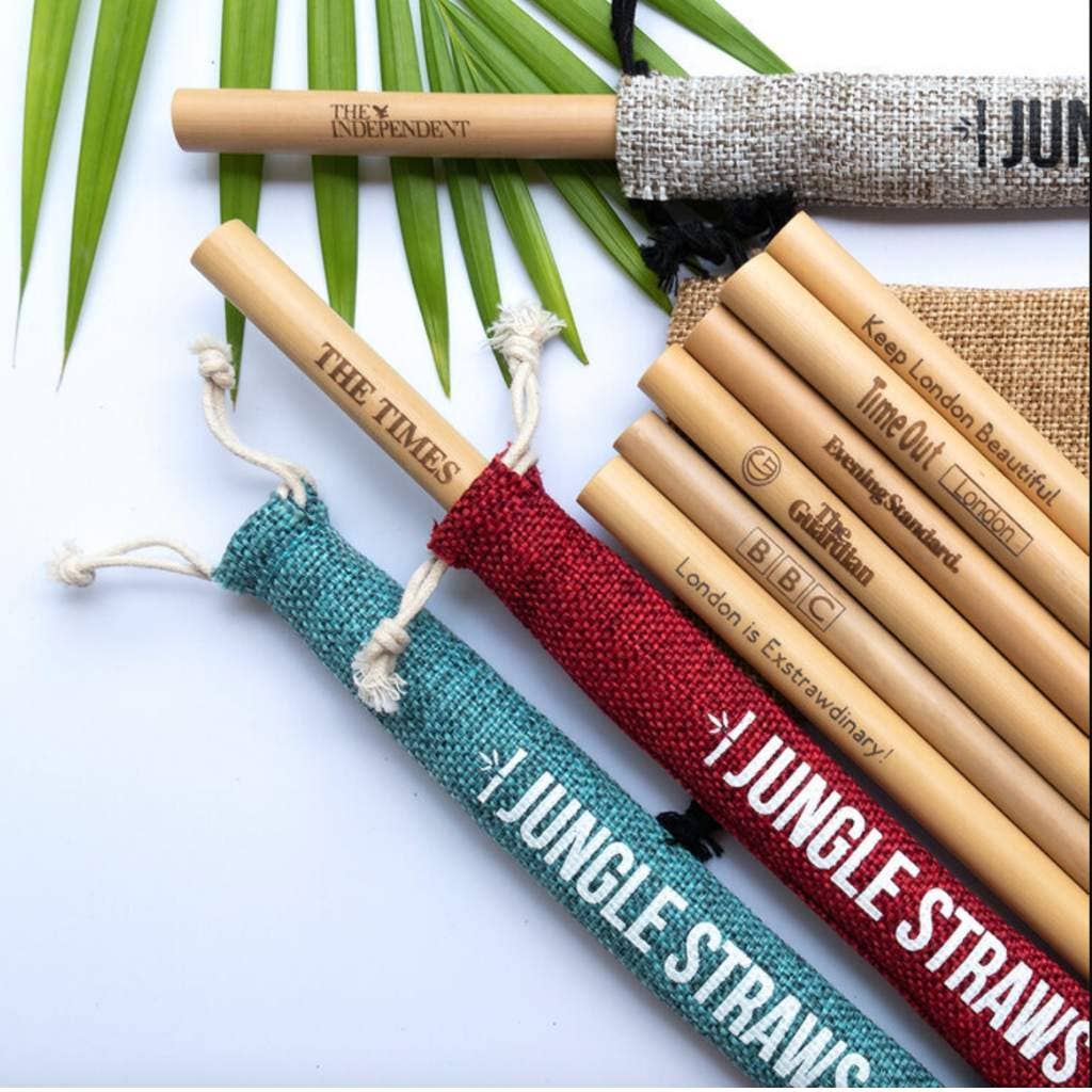 Bamboo straws by Jungle Straws are individually hand crafted and harvested by local artisans at a small, family-run farm in rural Vietnam. Our reusable bamboo straws are an eco-friendly and sustainable solution to plastic, made without the need for any harmful pesticides or chemicals. As an ethical supplier we understand how important it is to work with partners who share core values and beliefs. Engraving instructions: Text: Check the box to personalise. Write your desired text in the personalisation box. If you'd like a specific font, include this otherwise we will use Raleway semi bold (generic font). Logo: Check the box to personalise, write anything and send us your logo at customercare@jungleculture.eco Due to the nature of the product, our bamboo straws vary in width between 5mm-10mm. If you would like a specific diameter please message us Thin - 4-6mm (Cocktails) Medium 7-9mm (Every drink) Thick 10-13mm (Smoothies) Boba tea 13mm+ (Bubble tea - Straws have pointed edge)