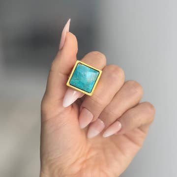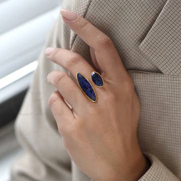 SKU: R037 Made in United States Color: Blue and Yellow Gold Is Set: Individual Material: Gold Filled and Stone Stone Type: Labradorite Style: Edgy and Statement Weight: 22.68 g (0.8 oz) Packaging: Recyclable and Recycled Production: Ethically sourced