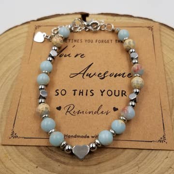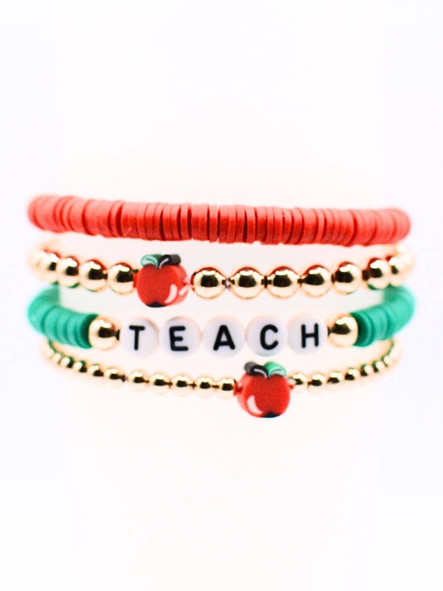 A thoughtful teacher gift, teacher appreciation surprise, thank-you gift, or motivational accessory for school staff, this Teacher Bracelet Gift Set makes it easy for students and parents to show gratitude in a meaningful way. This 2-piece bracelet set features: - Natural wood beads with gold accents - Black letter beads spelling a word of encouragement - An apple charm for a playful teacher touch - Packaged on a 3" x 3.25" card with the phrase “You are awesome to the core” The card includes a spot for personalization—let your child sign their name to make the gift extra special before handing it to their teacher! Also available as a bracelet set without the card for a simpler option.
