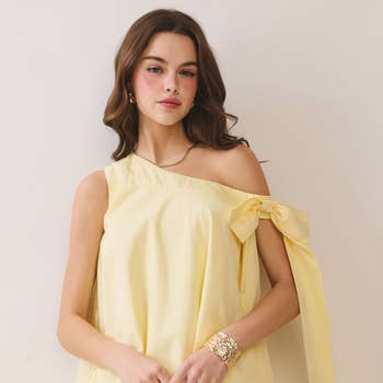 Yellow SY044 Chic Bow-Accent Cut-Out Mini Dress for wholesale on Faire1