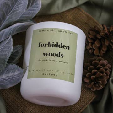 Warm Woods Funny Candle with mahogany and cedarwood notes + joke: Forest's love language. Clean, non-toxic, and perfect for boutiques & gift shops. Rich, woodsy, and a little witty, our Warm Woods Funny Candle blends mahogany and cedarwood to create the perfect masculine scent for any season. Hand-poured with a clean coconut-soy wax blend and non-toxic ingredients, this candle is part of our Clean Candles, Clean Jokes collection, where woodsy scents meet lighthearted humor. Smells like: mohogany, cedarwood Available in: • 8oz in an 11oz reusable glass vessel Our custom coconut-soy wax may show some "hang up" on the glass during the first few burns - totally normal and melts down with continued use.