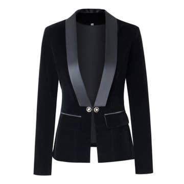 BL032 Velvet Blazer V-neck Suit with Satin Collar Slim Suit