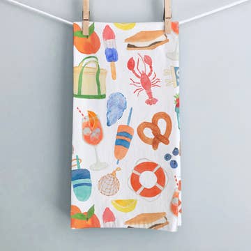 Wrap it around a glass bottle of water or wine for your table, or as a hostess gift. Tie it to a pic-a-nic basket for an afternoon picnic. Or, if we’re being practical, hang it on your oven handle and dry those hands and dishes with the soft touch of lake life. 15 x 25 cotton flour sack towel featuring our favorite lake life icons in red. Machine wash cold with like colors. Tumble dry low. Made in the USA. Summer hand towel. Hand towel for up north. cabin decor. cottage decor. lake house decor. lake life. lake love. camping. nature. outdoors. boating. nautical. sailing. loons. anchor. sailboat. buoys. buoy. Chris craft boat. nautical flags. sailing flags. oars. paddles. Adirondack chairs. bonfire.