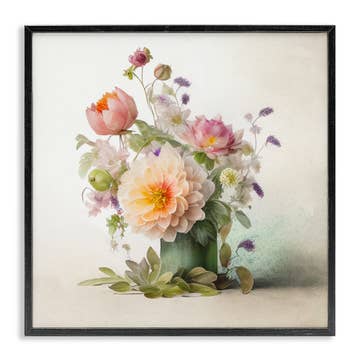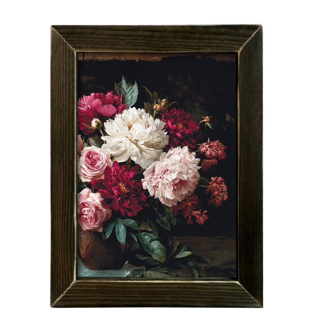 8" Round Vintage Dark Floral Art