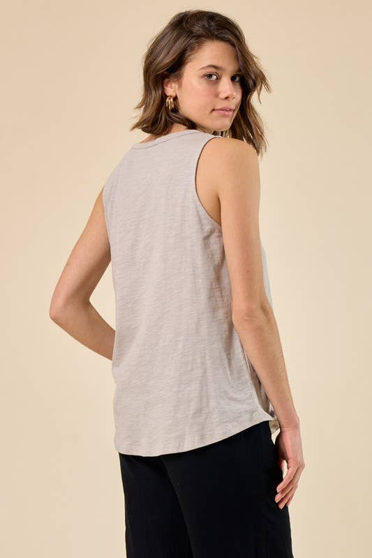 Washed Ribbed Cropped Button V-neck Tank Top