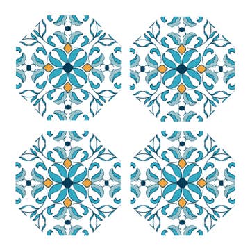 Each coaster has a different coordinating design and measures 4” by 4” square. Made in the USA of absorbent stone to absorb excess condensation from beverages. Cork backing protects your surfaces from scratches and stains. Beautiful artistic design allows the coasters to remain displayed even when not in use. Makes a wonderful housewarming, birthday or holiday gift. Comes packaged in a clear box showing each design and includes a hang tab.