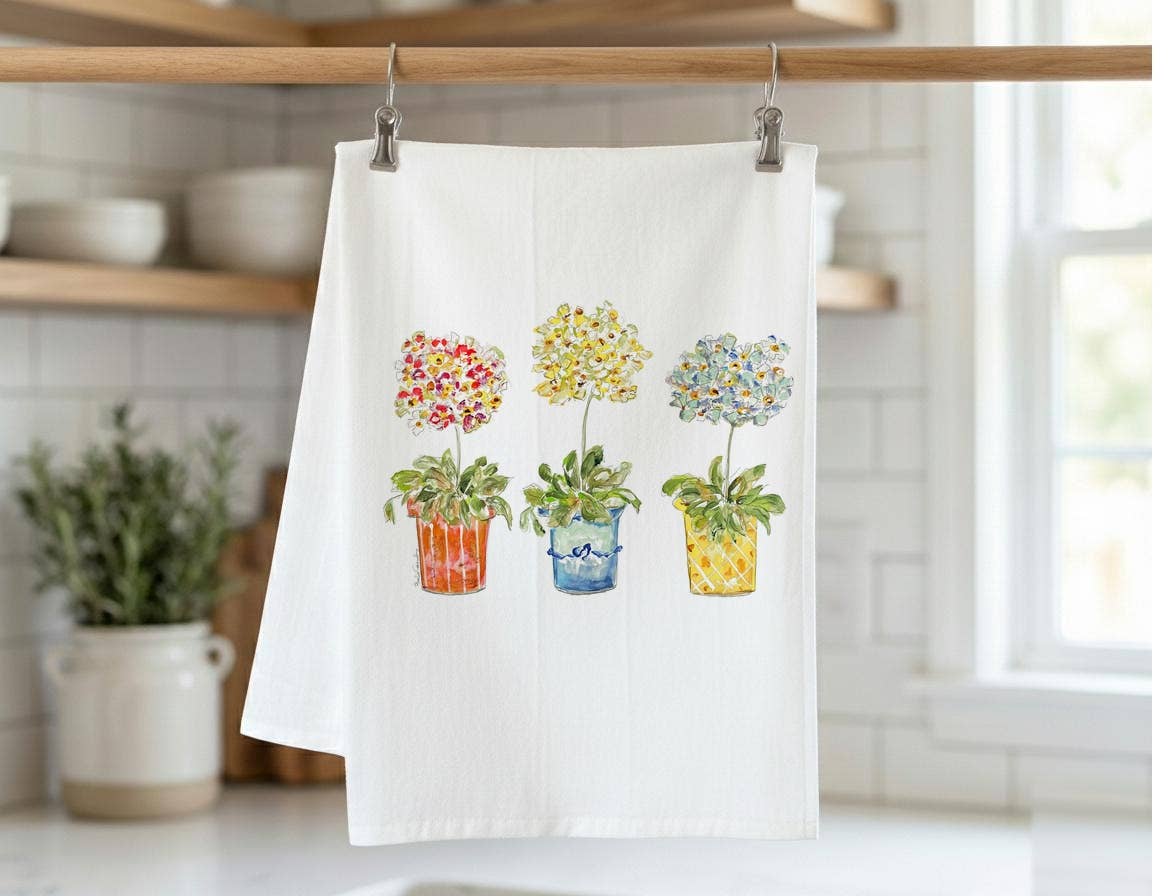 Our flour sack towel is made from 100% bright white cotton with a tight weave and a straight, clean hem on all four sides. Each towel measures 28” x 28” and is crafted from a heavier cotton stock, making it softer, thicker, and more durable. The printable area is approximately 8.5” x 11”, positioned on the lower middle third of the towel for perfect visibility when draped over an oven handle. Perfect for gift giving, drying hands and dishes, or brightening up your home with our whimsical, colorful art! Hand printed with care in the USA Care Instructions: machine wash cold. Air dry or tumble dry low. Iron on the reverse side of design if needed. We no longer offer individually packaged towels.