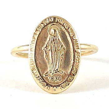 Elegant Colorful Minimalist Oval Gold Virgin Mary Adjustable Protection Ring for Women Material: Brass with Real Gold Plated, Tarnish Free Size Adjustable - One size fits most - US SIZE 7 Fyi, Hypoallergenic Tarnish Resistant Nickel and Lead Free