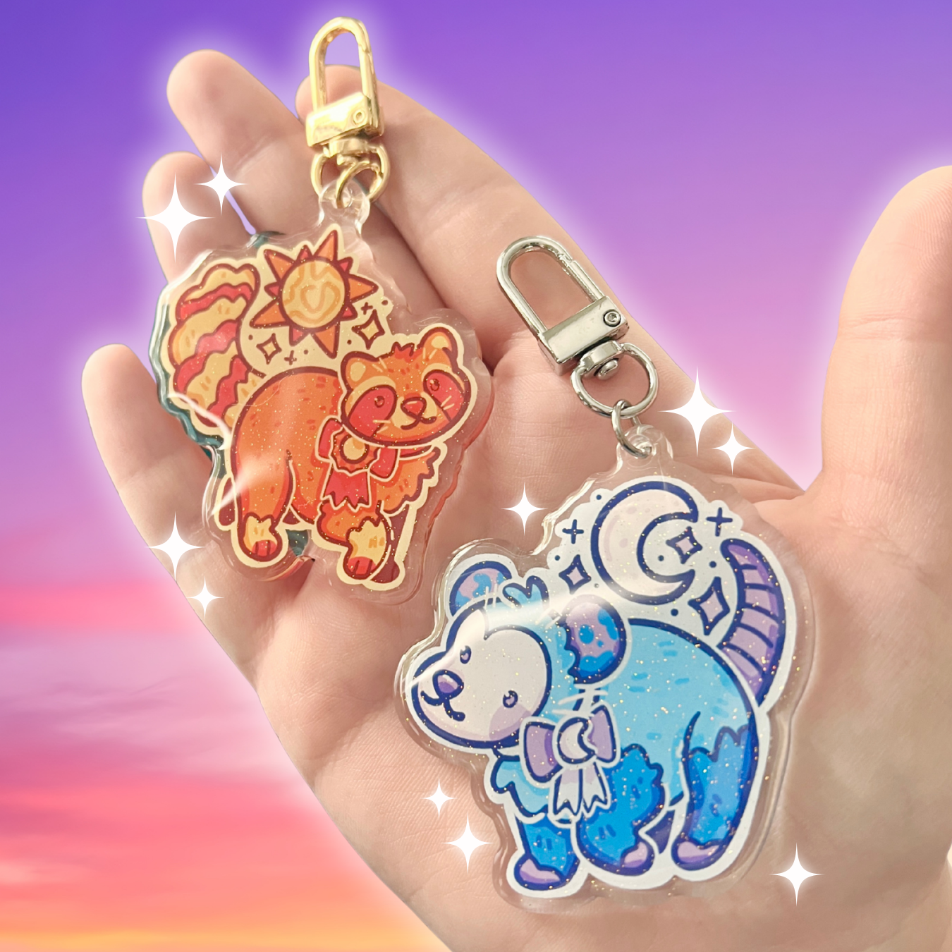 Introducing this collection of 16 acrylic charm/keychains, featuring different colored cats holding frappes with flavors that perfectly compliment their fur! Whether you're a cat lover, a Starbucks fan, or just looking for a unique and fun keychain, these guys will make you smile every time you use them. Get one for yourself or gift them to your friends and family who love cats and coffee! :) ~ About 2 x 2 inches ~ Epoxy on front side ~ Basic gold colored clasp The charm will come with protective plastic on the flat side- be sure to peel it off! :)