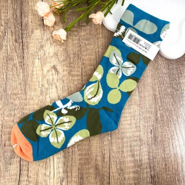 Sage Green Turtle socks - Hawaiian Print - Honu tropical