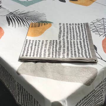 UNDERNEATH IT ALL Hand-dyed cotton tablecloth, with a soft fringed edge Play with mixing complementary colors between napkins + dinnerware, or go for a tonal table Makes for a relaxed, perfectly draped backdrop for the rest of your table settings Material: Cotton Care Instruction: Machine washable. Lay flat to dry + do not bleach.