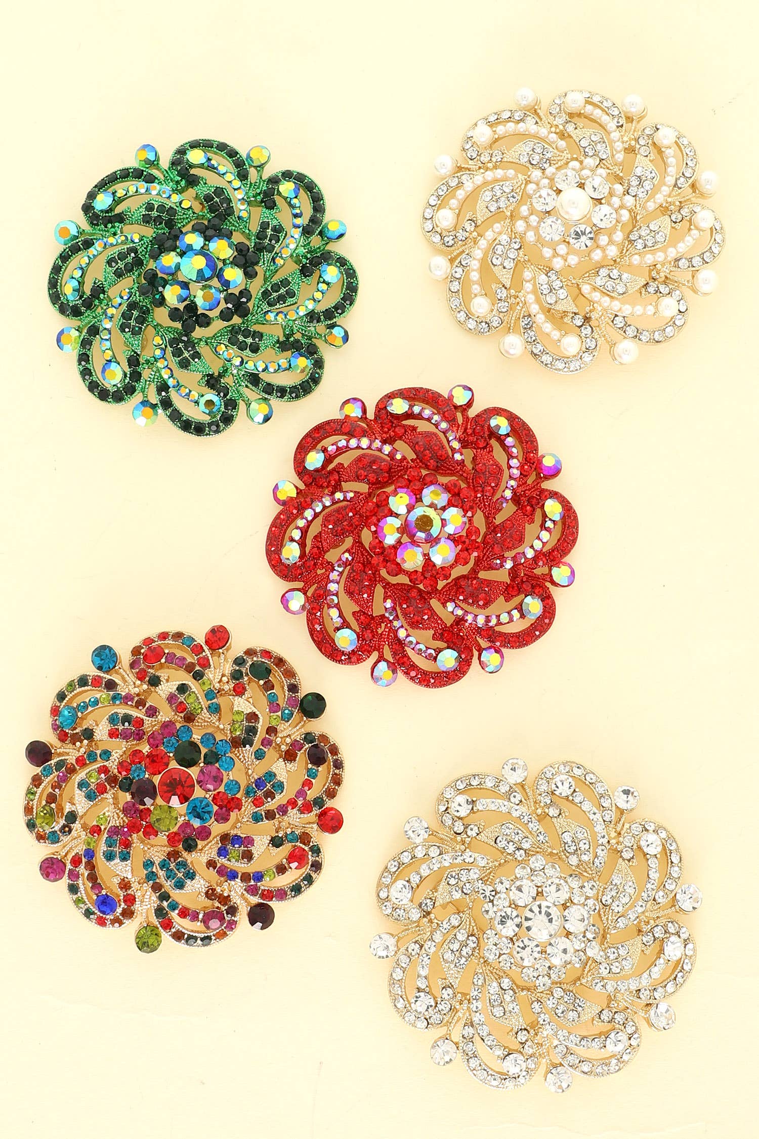 Wholesale Floral Geo Shape Jeweled Cluster Brooch Pin