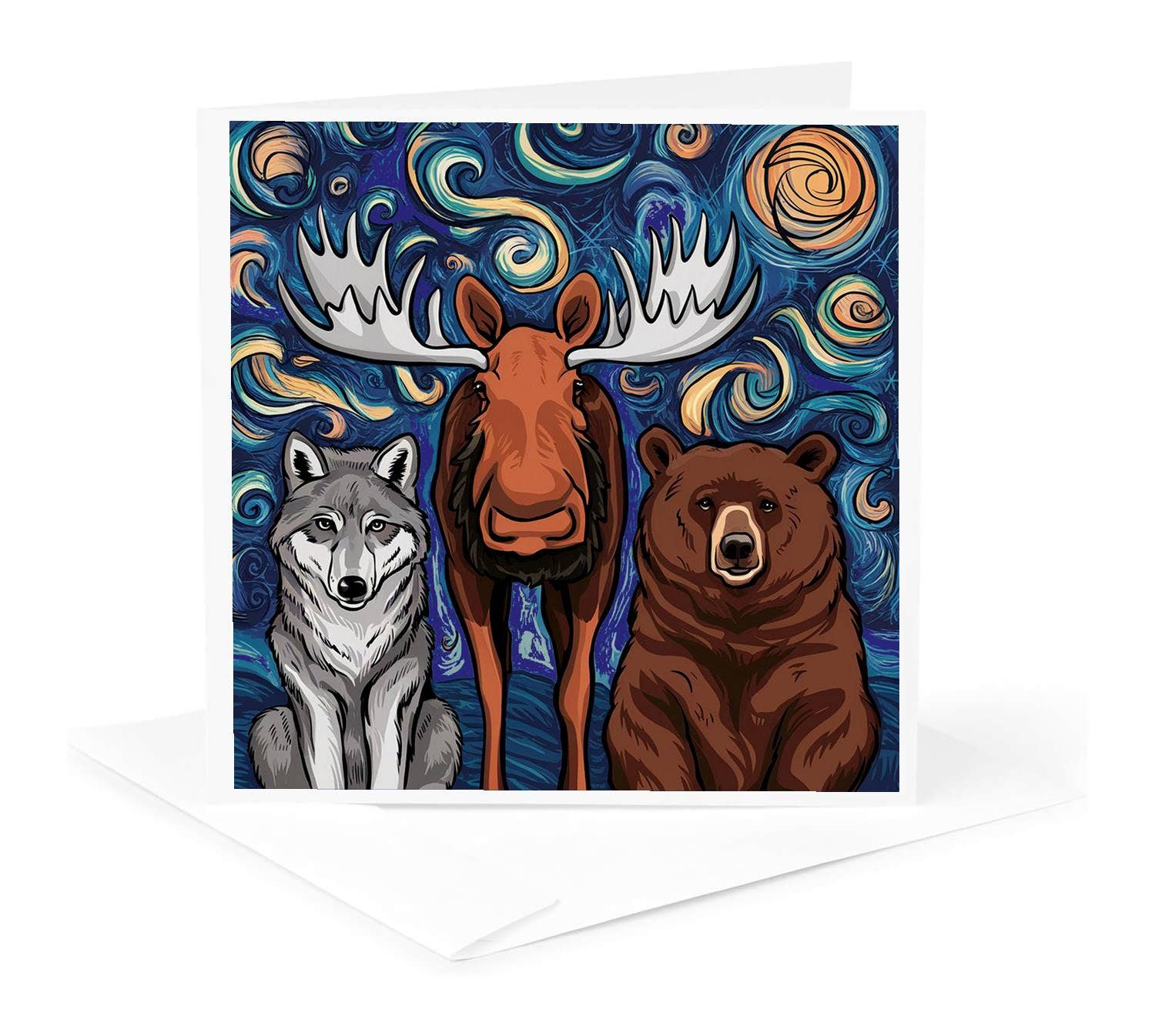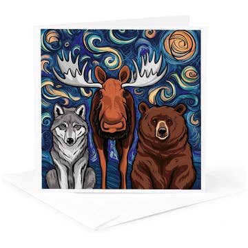 Pen and ink w/watercolor by Ty Meier 5"x7" Greeting Card, blank w/ envelope. A content goat and his little friend bittersweetly contemplate of the coming winter and shortening of days, and celebrate as you do around solstice